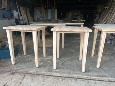 木材や金具など、デザインに合った材料を選び、加工の準備を進めます。